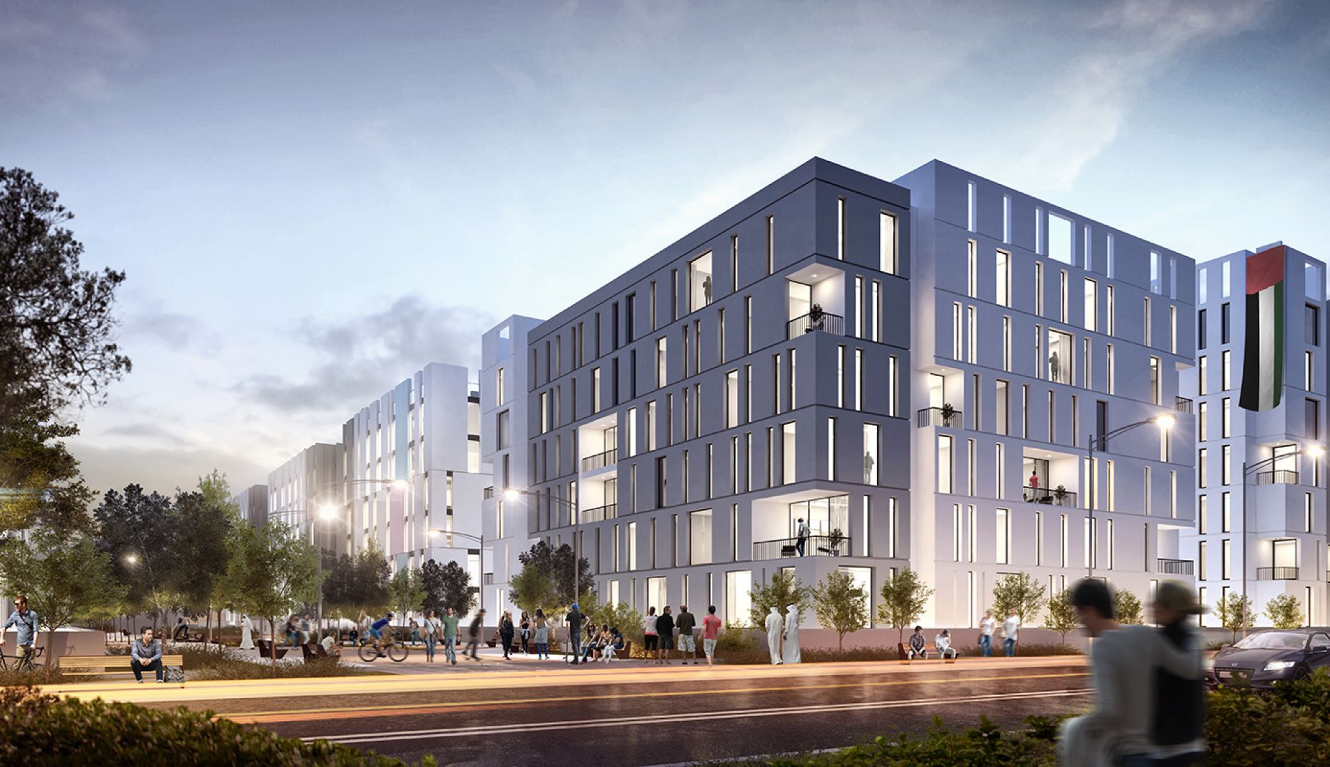 East Village is one of the new apartment complexes that are part of the Aljada community. It consists of three buildings: The Solo, The Riff and The Link. The complex is located in Sharjah's central Naseej District, and the developer is Arada Developments LLC, as well as the community as a whole. East Village's small-scale living spaces are suitable for students, businessmen and young couples. Since the complex is located in close proximity to a major highway, its more affordable apartments may attract tenants working in Dubai.
