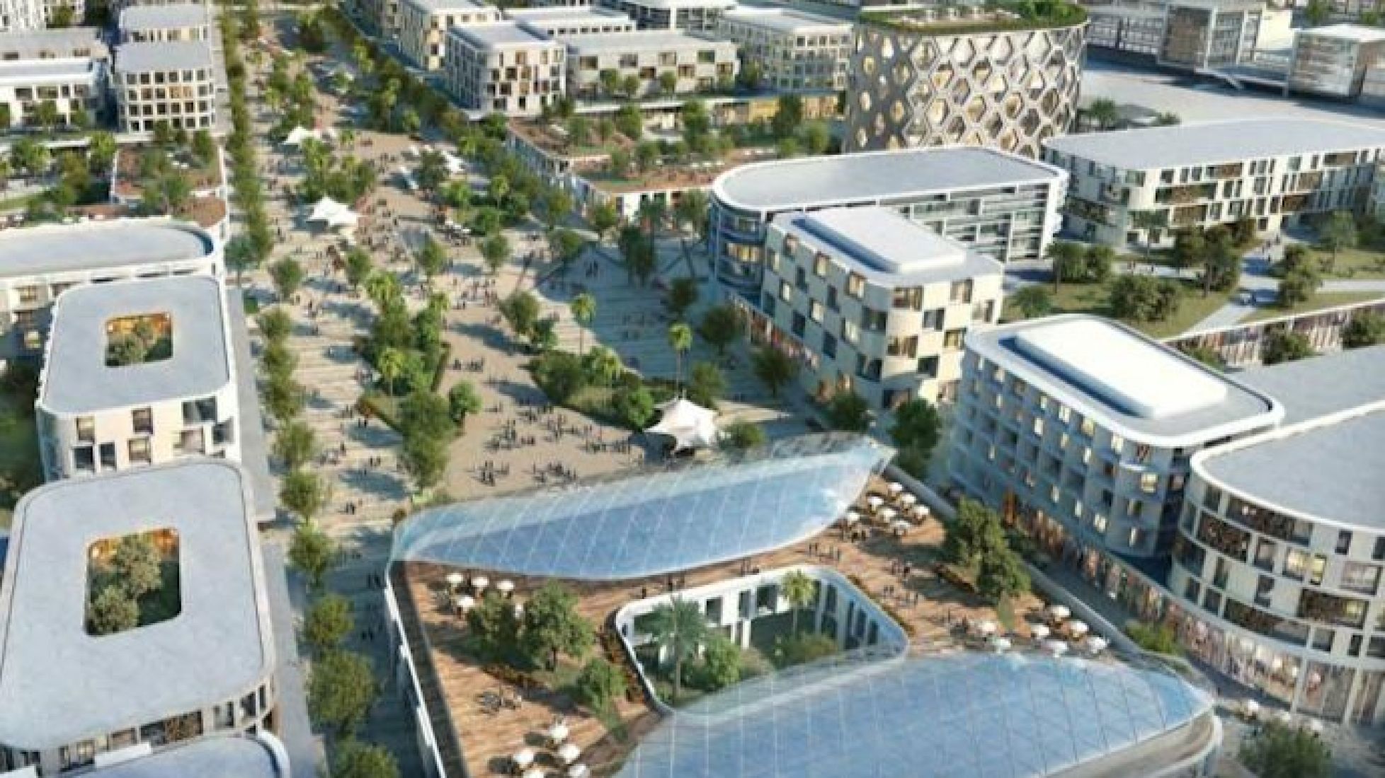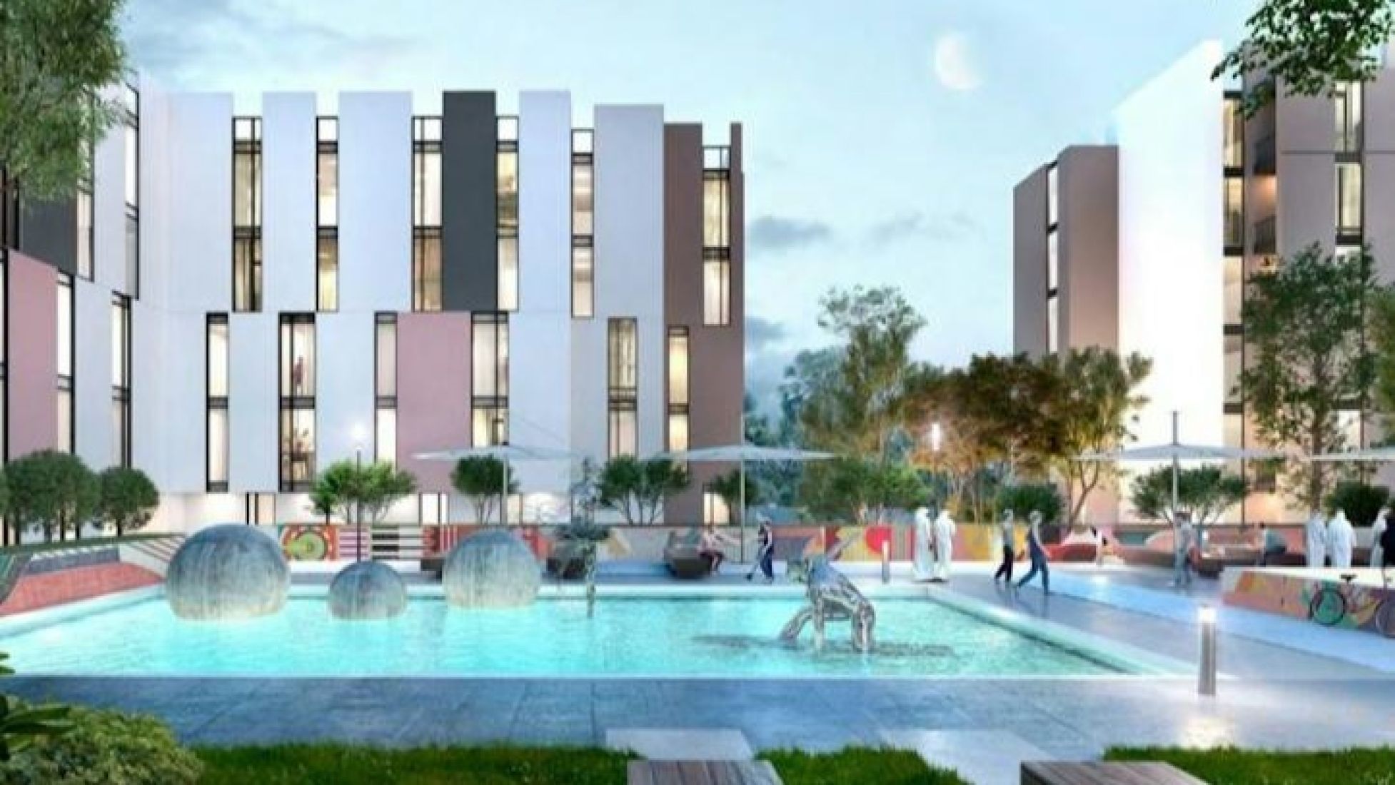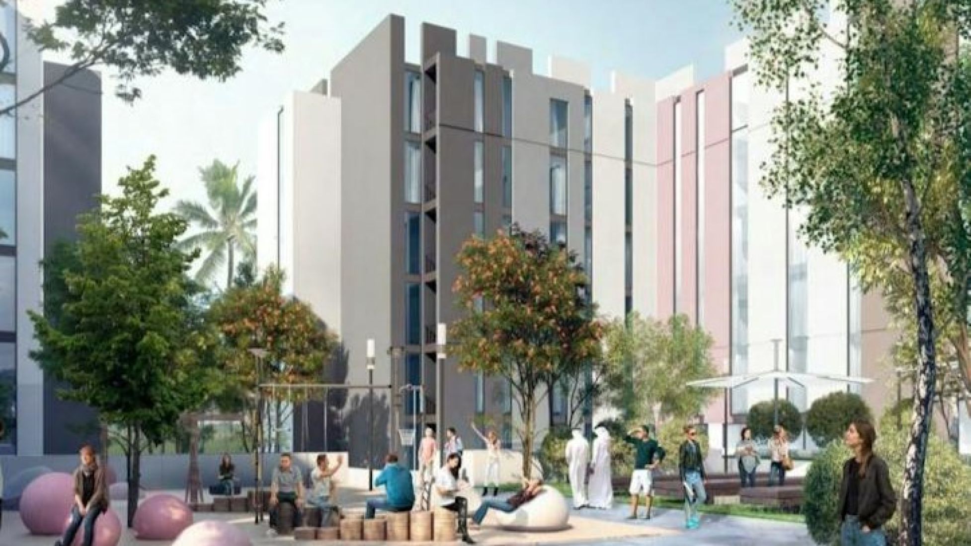 East Village is one of the new apartment complexes that are part of the Aljada community. It consists of three buildings: The Solo, The Riff and The Link. The complex is located in Sharjah's central Naseej District, and the developer is Arada Developments LLC, as well as the community as a whole. East Village's small-scale living spaces are suitable for students, businessmen and young couples. Since the complex is located in close proximity to a major highway, its more affordable apartments may attract tenants working in Dubai.