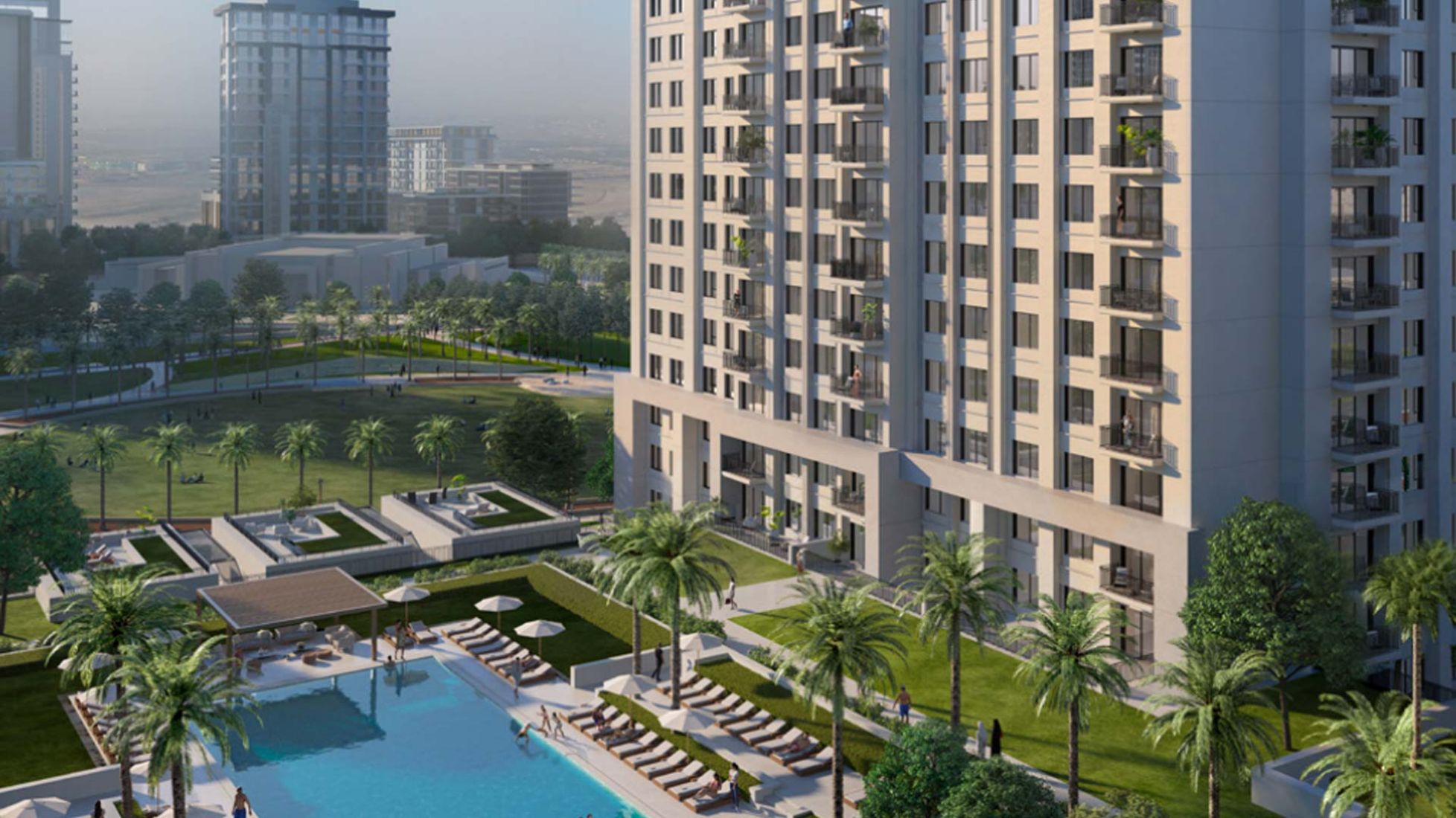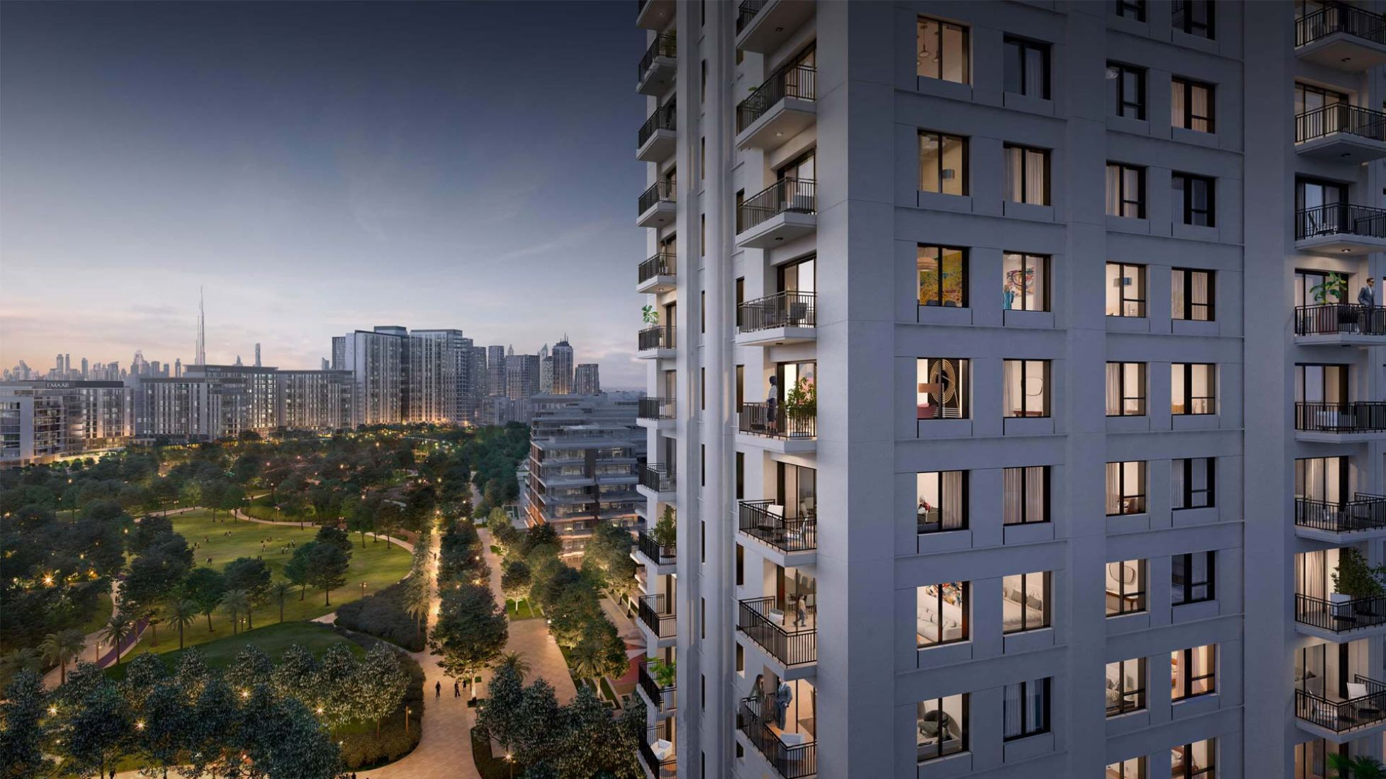 The Lime Gardens residential complex under construction is a new project from one of the leading construction companies in Dubai, Emaar Properties. The 23-storey residential complex will be built in the Dubai Hills Estate next to the large park area of Dubai Hills Park. The apartment building will be located near the exit to a major traffic intersection, so that local residents can easily get to all key points in Dubai. The following amenities will be available on the territory of the high-rise complex: - a large outdoor terrace with a swimming pool, recreation areas near the water and walking paths surrounded by ornamental trees and shrubs; - swimming pool for children; - gym with exercise equipment; - multifunctional hall; - outlets on the first floor of the building; - play areas for children; - Dedicated barbecue areas.